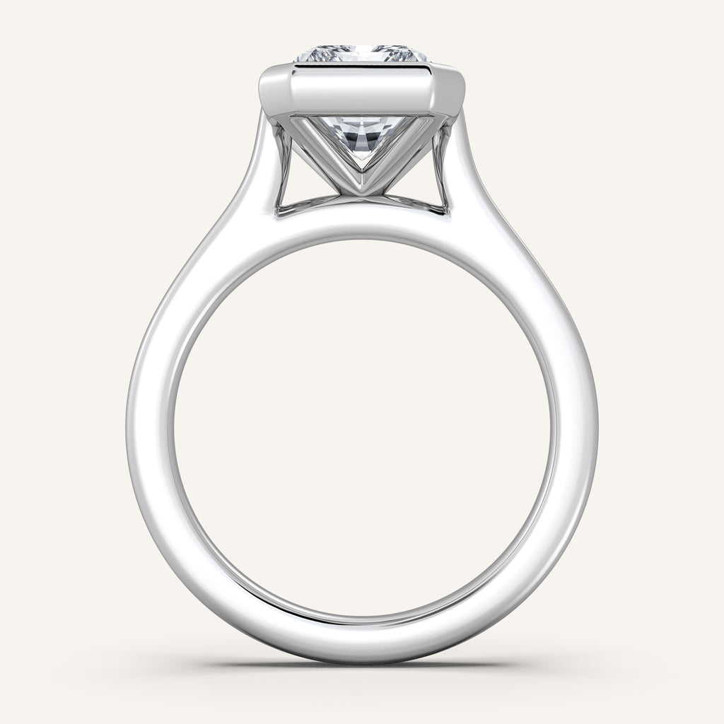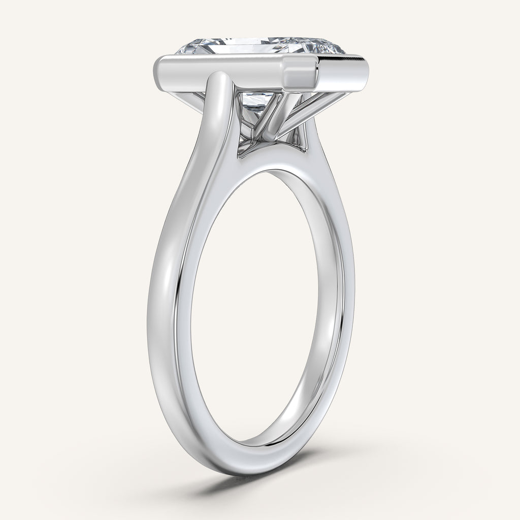 Introducing our bezel set cathedral ring, one of the most secure and enduring designs in our collection. The cathedral arches add graceful support to the fully enclosed center stone, combining elegance with everyday durability. Finished with a refined 2mm band, it offers a sleek and balanced look from every angle.